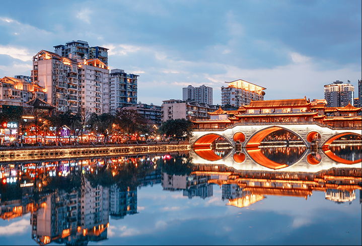 Chengdu is an ancient city with a long history of more than 2,300 years. The pleasant climate and profound historical heritage like the "Wu Ho Shirin", "Qingcheng Mountain" and "Du Fu Thatched Cottage" make Chengdu a calm, leisurely and fascinating tourist destination both for the domestic and international population. The adorable panda is Chengdu's icon and here you'll have the chance to see Pandas in their native habitant closely. Chengdu is also known for its spicy and flavorful food and hotpot which can be enjoyed anywhere in the city including the in the popular "Narrow and Broad Alley (Kuan Zhai Xiang Zi)", modern commercial district "Tai Gu Li" and the classic street "Jin Li". In addition to its historical and cultural charm, Chengdu also shows the demeanor and style of an international modern city as the economic center of western China.